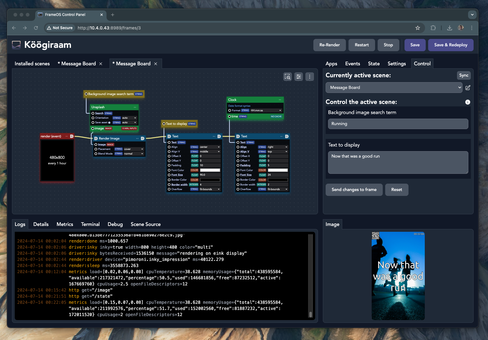 - Someplace to run the FrameOS backend. Run it locally or on a server. It'll connect to the frames with SSH.