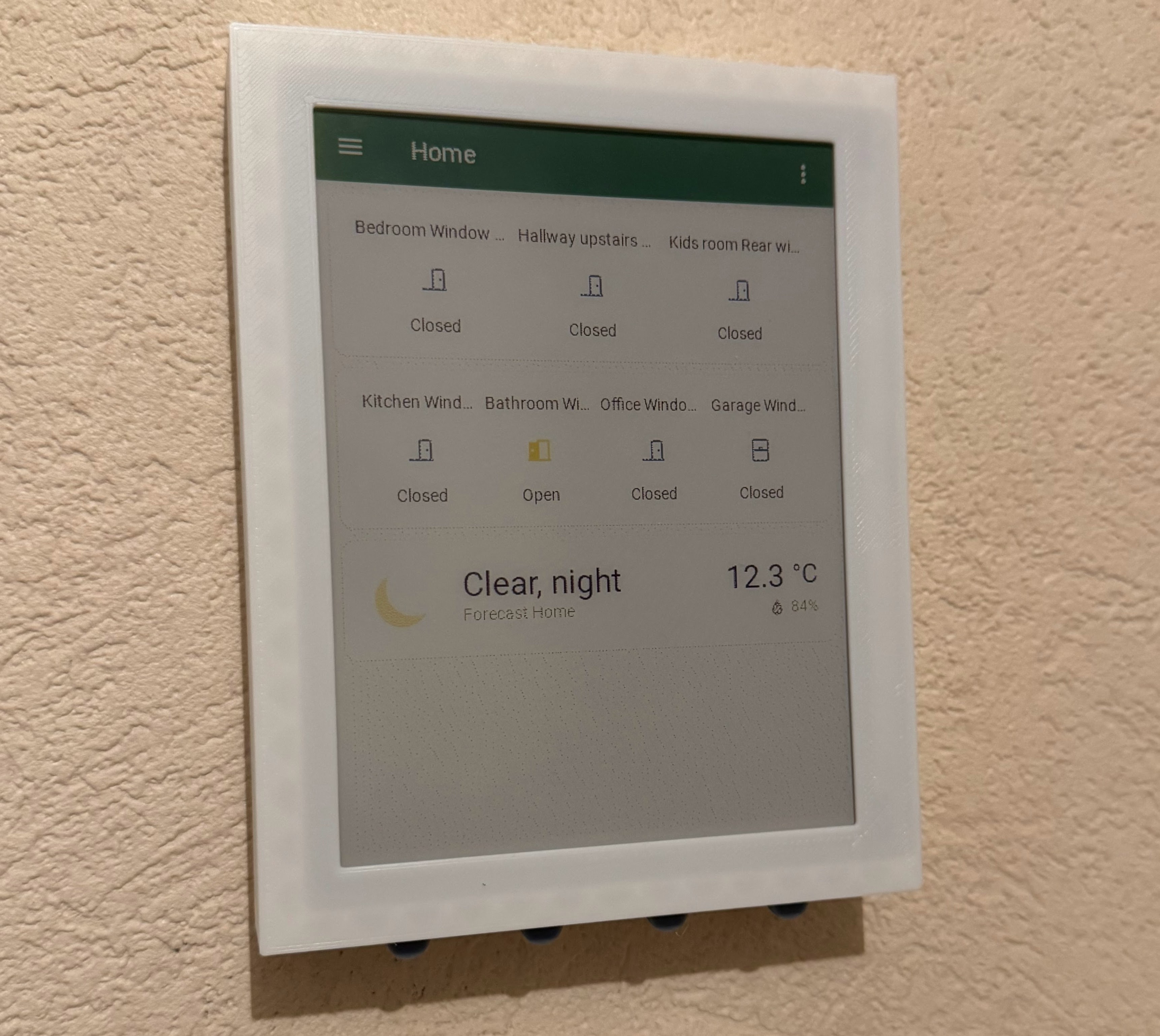 3D printed cases with kickstands for 7.3" and 13.3" panels | Same 13.3" full color e-ink display on the wall |