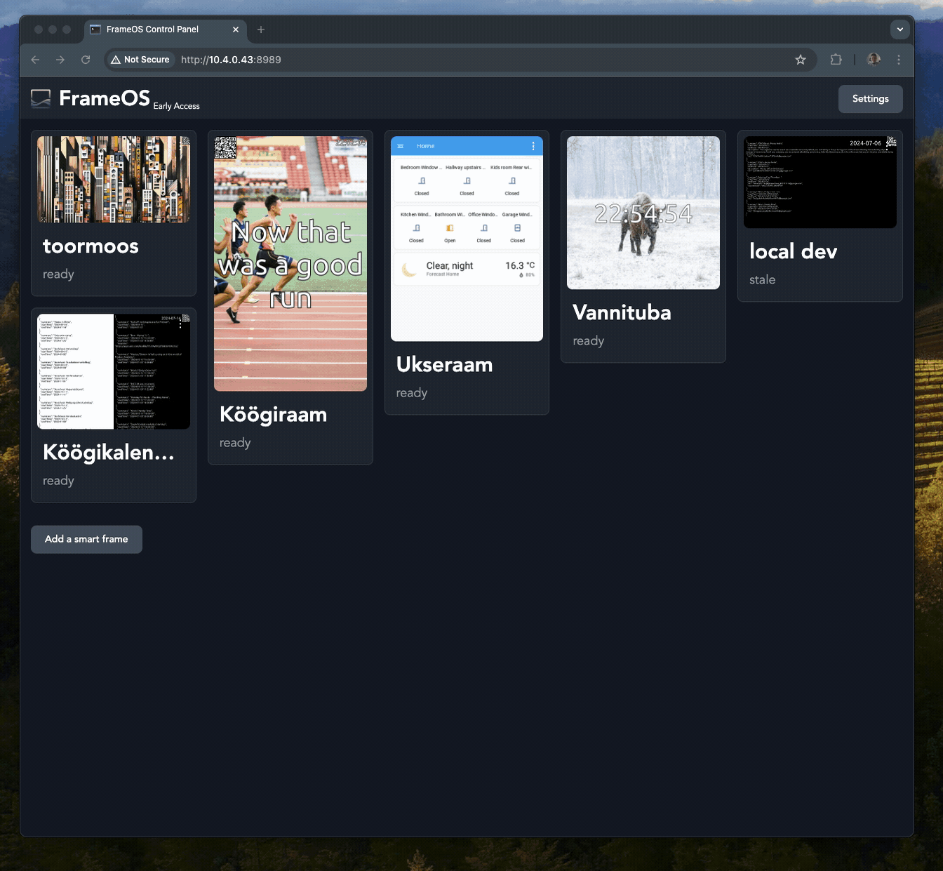 Start by adding your frame's name and IP address into the "Add a new smart frame" dialog. Select the right driver for your display.