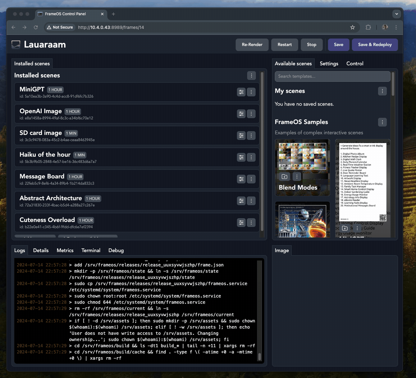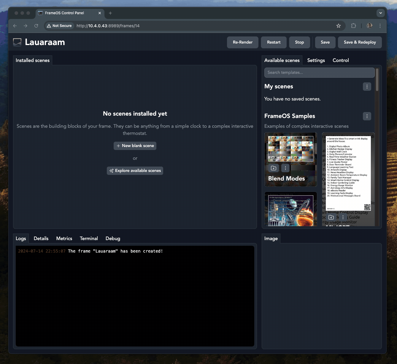 If you don't have the FrameOS backend running or can't connect to your raspberry over SSH, read those chapters first.