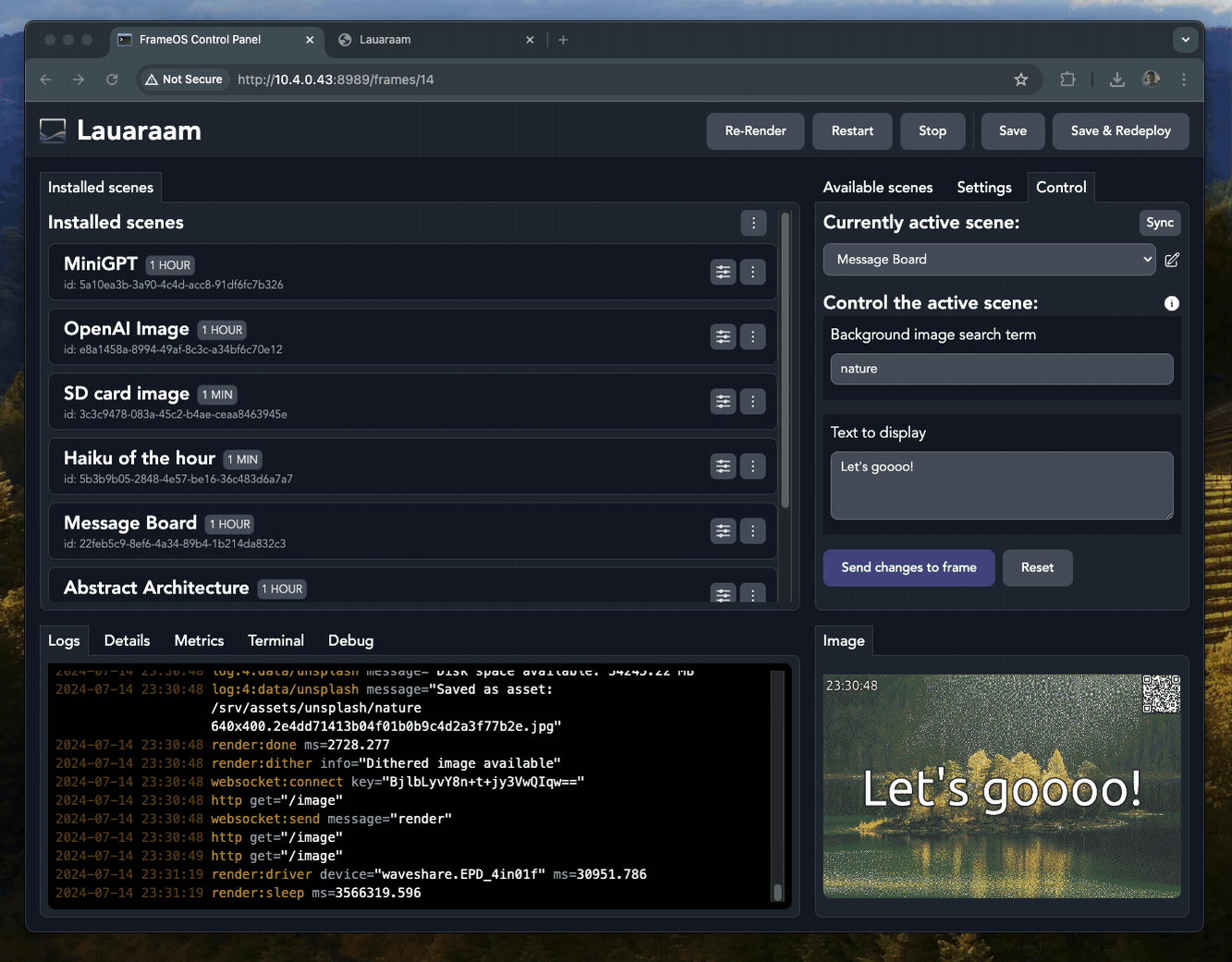 Once the deploy finishes, a preview image should appear, followed by the same image on the frame itself.