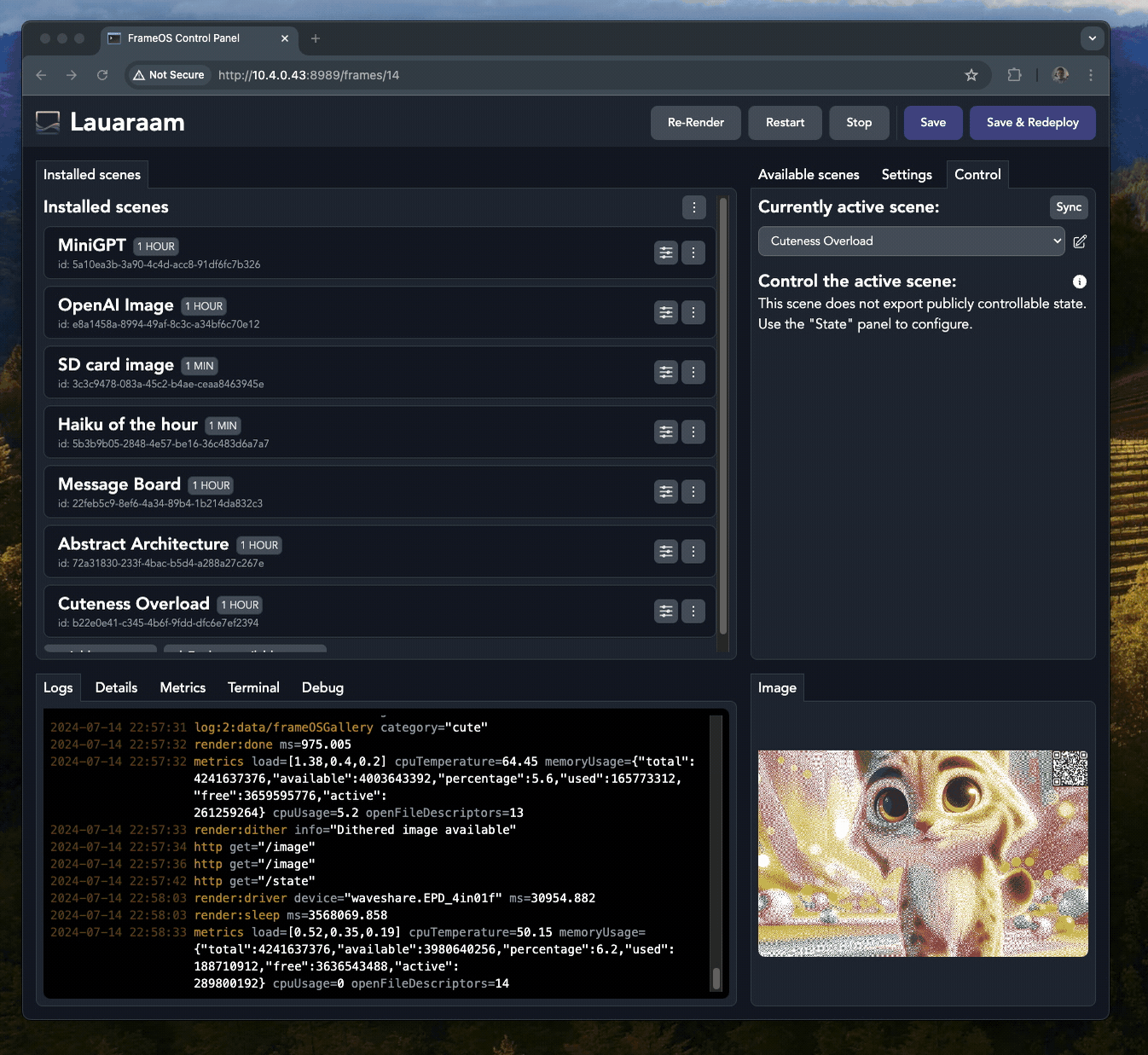 You can also use the "Control URL", found under the "Details" tab, or by scanning the QR code on the frame itself.